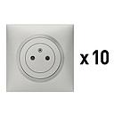 Lot de 10 prises de courant 2P+T Surface dooxie complet - aluminium