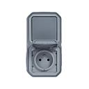 Prise de courant avec va-et-vient vertical Plexo complet saillie - gris