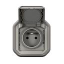 Prise de courant avec volet Plexo complet encastré avec griffes - gris