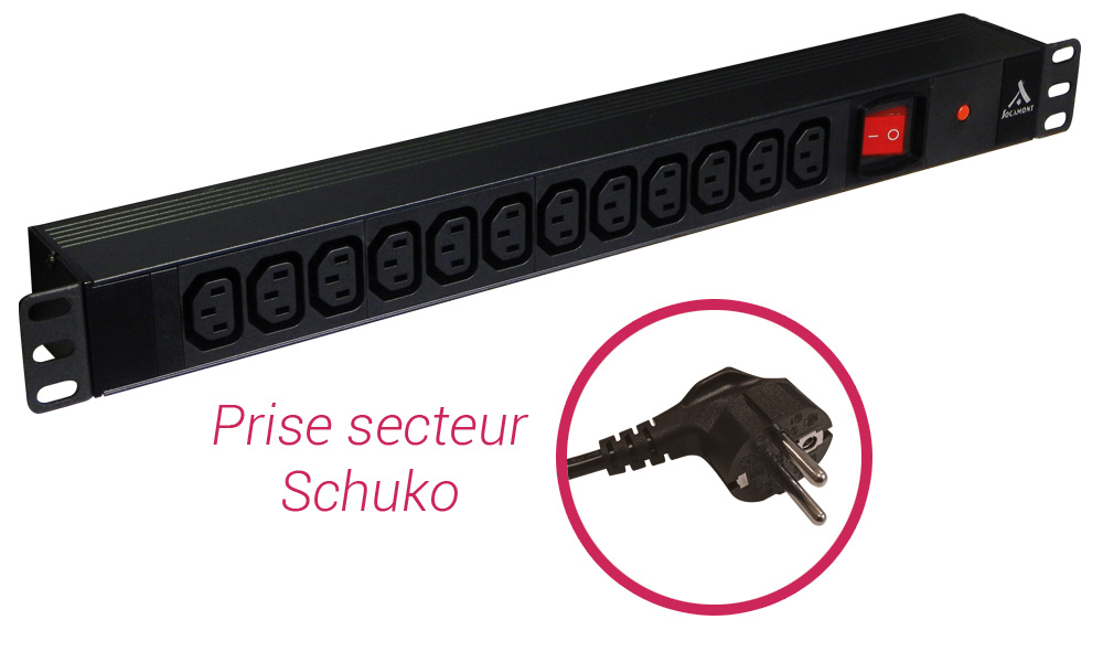 BANDEAU PDU 1U, 12 PRISES C13 AVEC INTERRUPTEUR LUMINEUX VDE 16A
