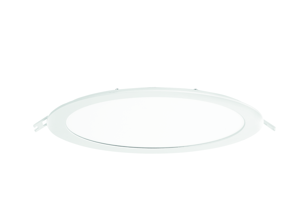 Poly-Slim™ - Downlight LED extra-plat à éclairage latéral 9W 4000K IP44. Efficacité de 94lm/W. Profondeur 21 mm. Driver LED non-gradable inclus (40mm requis). Idéal pour les vides de plafond limités. châssis en polycarbonate
