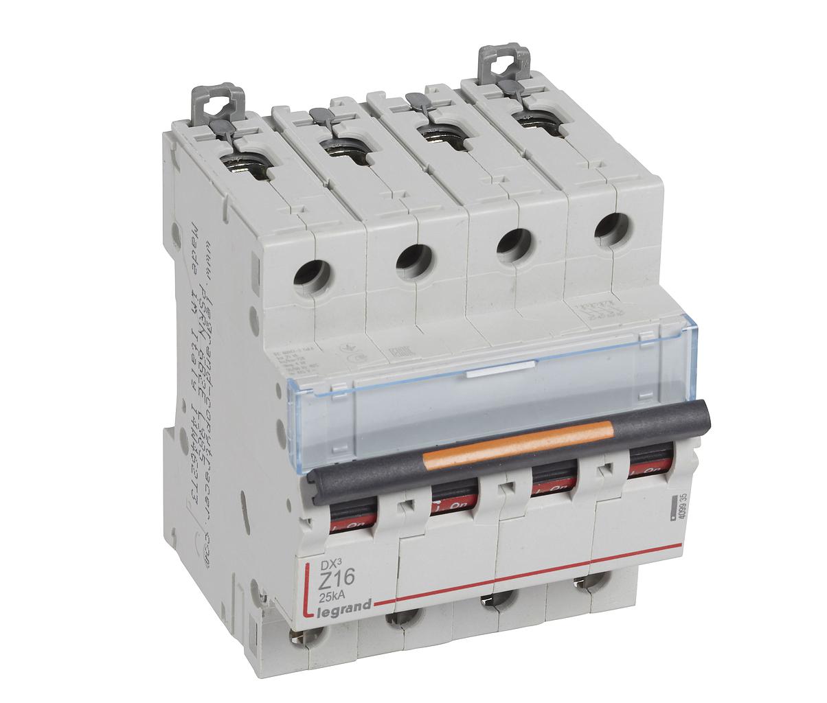 Disjoncteur DX³ 25kA arrivée haute/départ bas vis 4P 16A - courbe Z - 4 mod