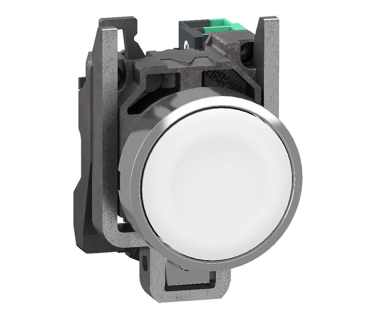 Harmony XB4 - bouton poussoir - à impulsion - poussoir affleurant - blanc - Ø22 - collerette dépassante - métal chromé - 1F - fixation Ø22 - raccordement par Push In