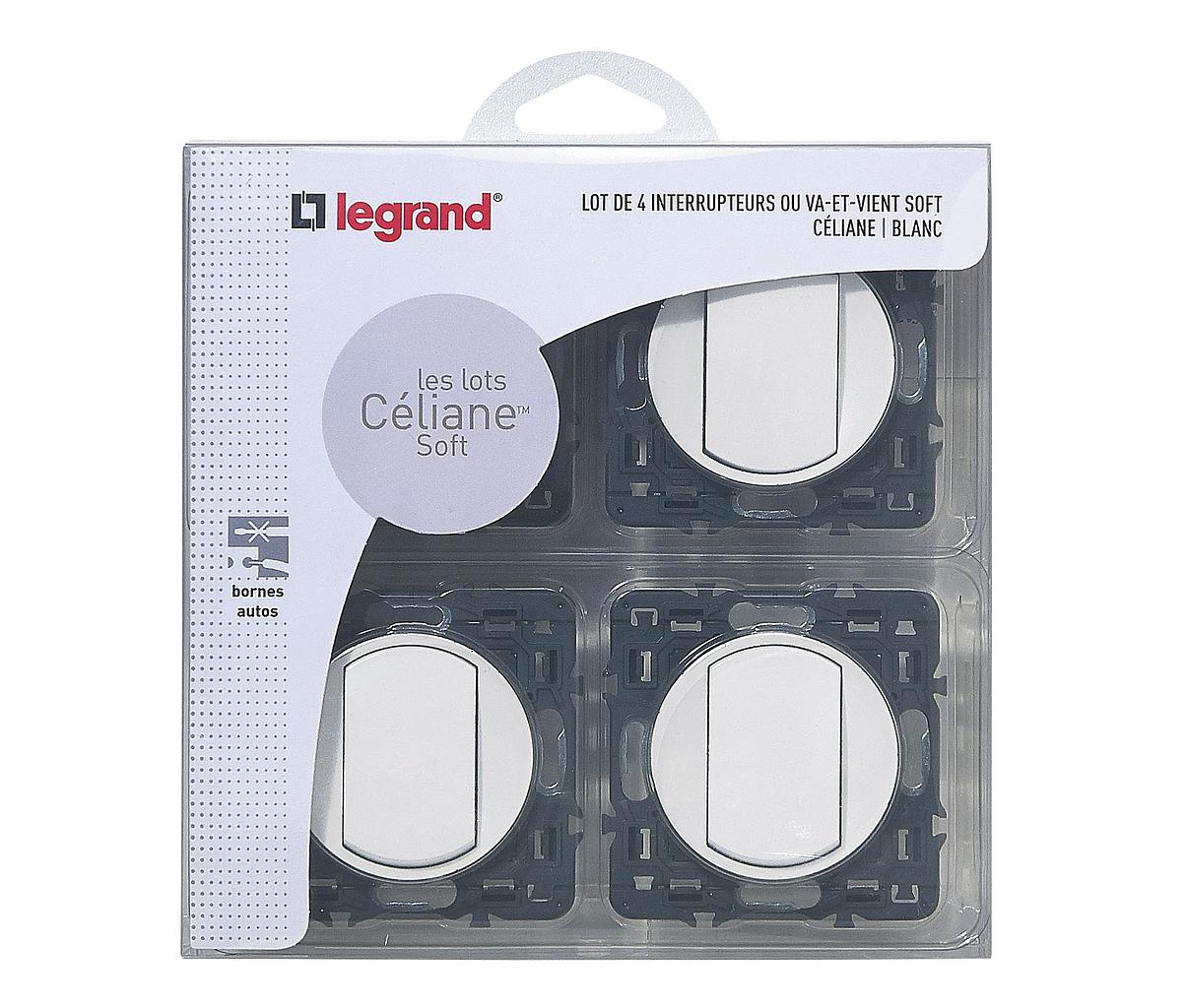 Lot de 4 interrupteurs ou va-et-vient Céliane Soft - blanc