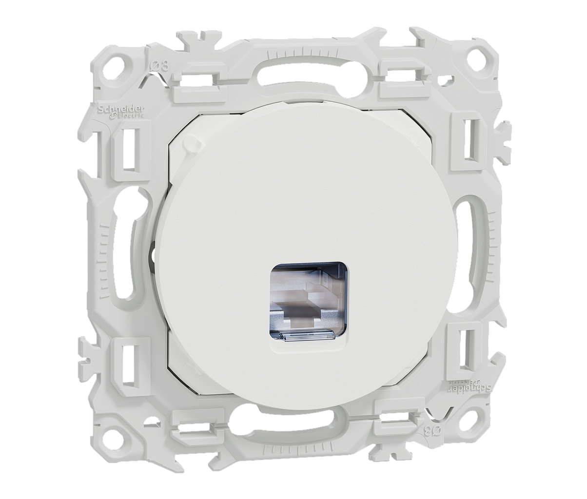 Odace - prise de communication simple - connecteur S-One RJ45 Cat6A STP blindé - grade 3 TV - téléphone + informatique + TV TNT + TV SAT - compatible 10 Gigabits et PoE++ type 3 et 4 - cache peinture - blanc RAL 9003 mat - IK04 IP20