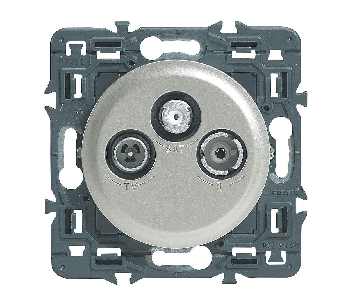 Prise TV-R-SAT DAB+ Céliane - titane avec support