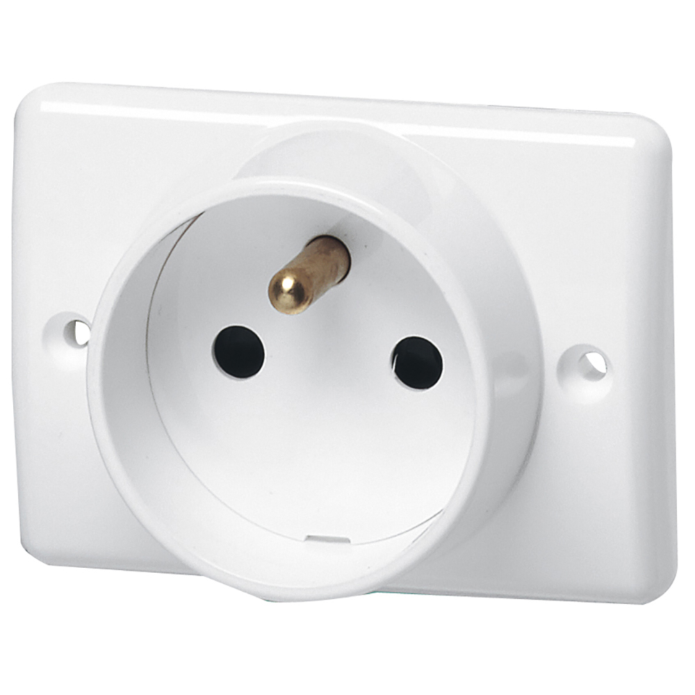 Prise de courant avec terre pour plinthe - Blanc