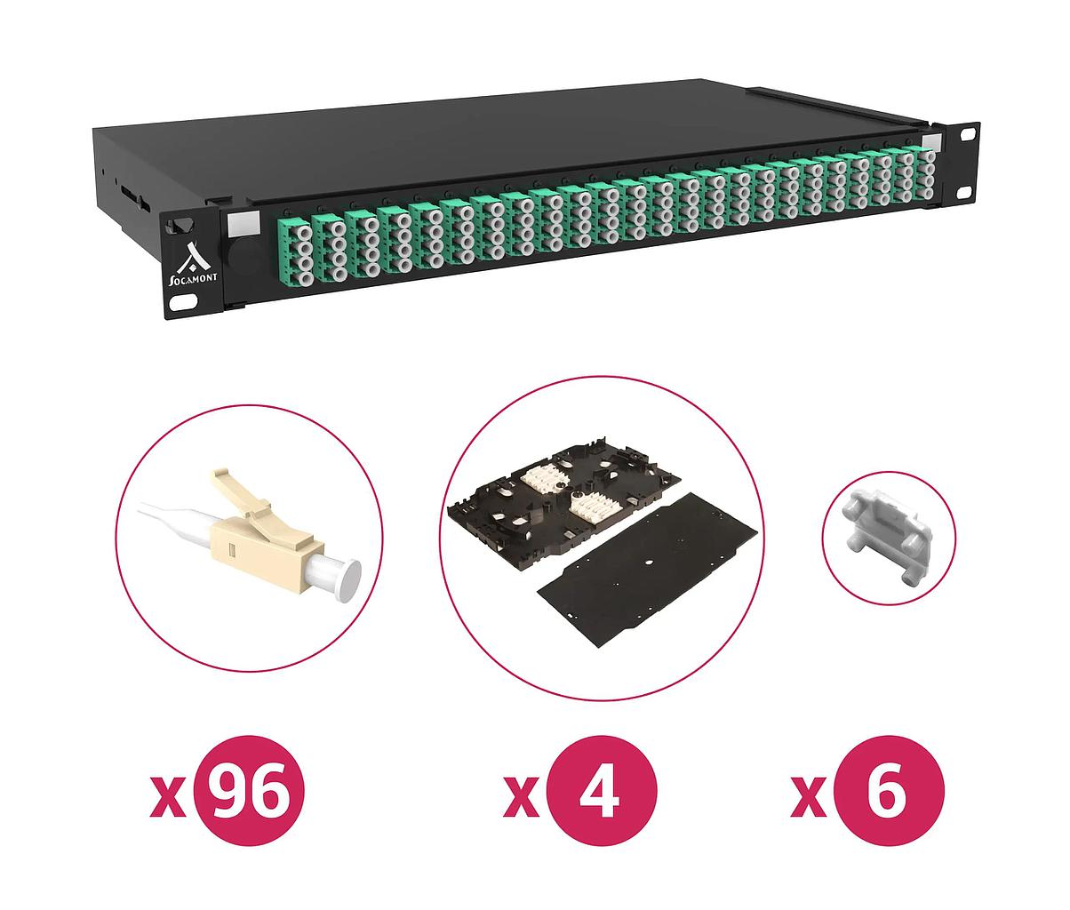 TIROIR OPTIQUE 19" 96 FO 88609 24 LC MULTI QUAD OM3-4 PACK ACCESSOIRES